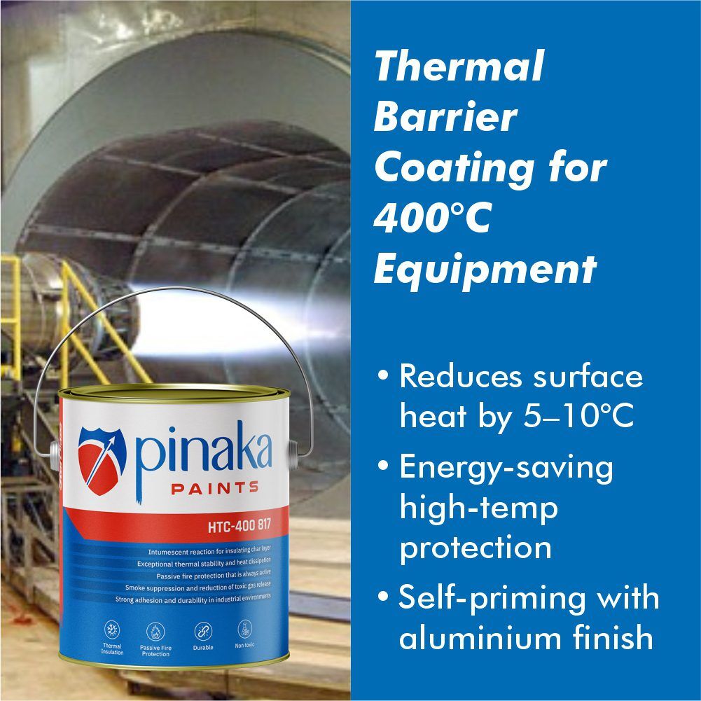Pinaka HTC-400 817 is a high-build, single-component aluminium-pigmented silicone coating designed to reduce radiant and convective heat loss from industrial surfaces operating at temperatures up to 400°C.
