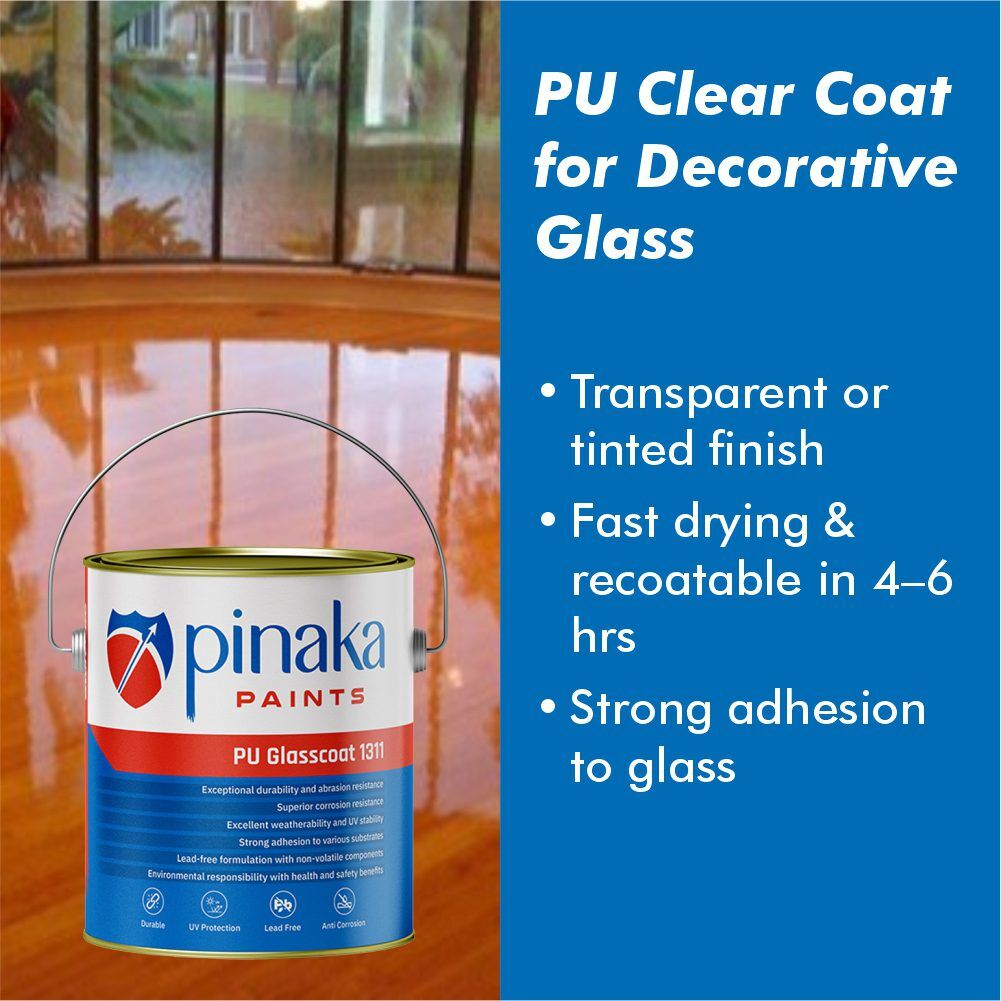 Pinaka PU Glasscoat 1311 is a premium two-component polyurethane clear coat developed for high-performance glass finishing. It delivers a smooth, durable film with the option of crystal-clear transparency or tinted effects using compatible metal tone dyes. With excellent sprayability, fast recoatability, and strong adhesion, it’s ideal for both decorative and industrial glass applications.