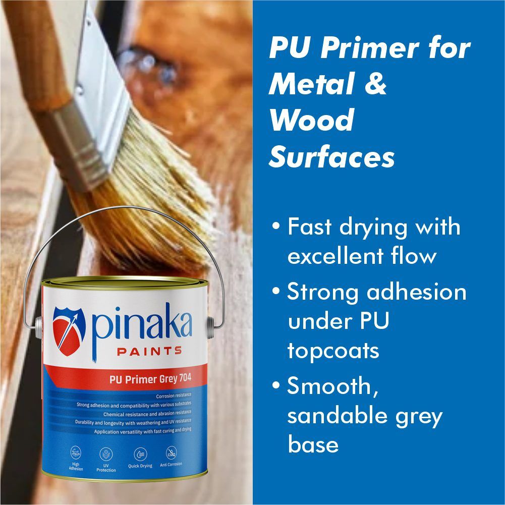 Pinaka PU Primer 704 is a two-component polyurethane primer formulated for vehicle refinishing and industrial applications on metal and wood. It dries faster than synthetic primers and delivers excellent adhesion, making it ideal for use under PU and automotive topcoats.