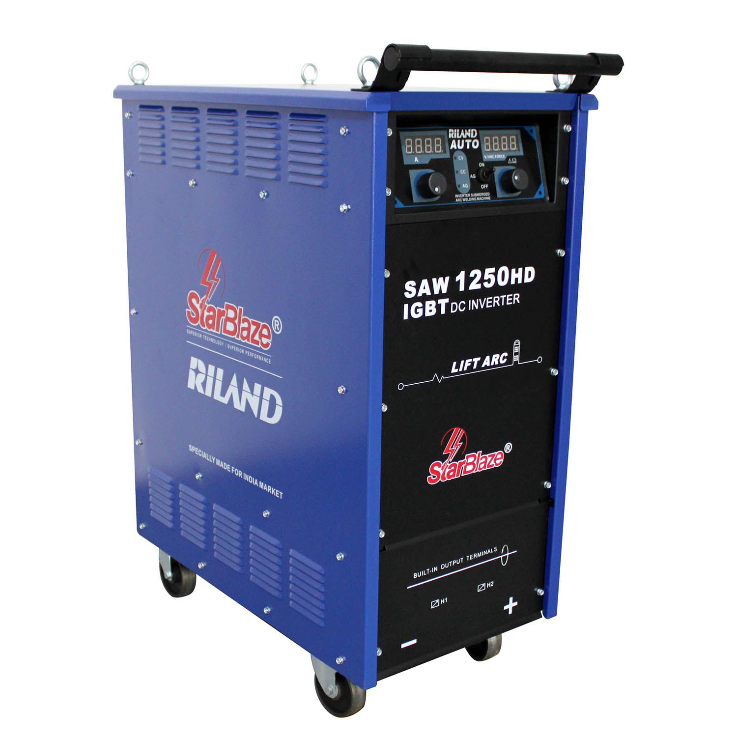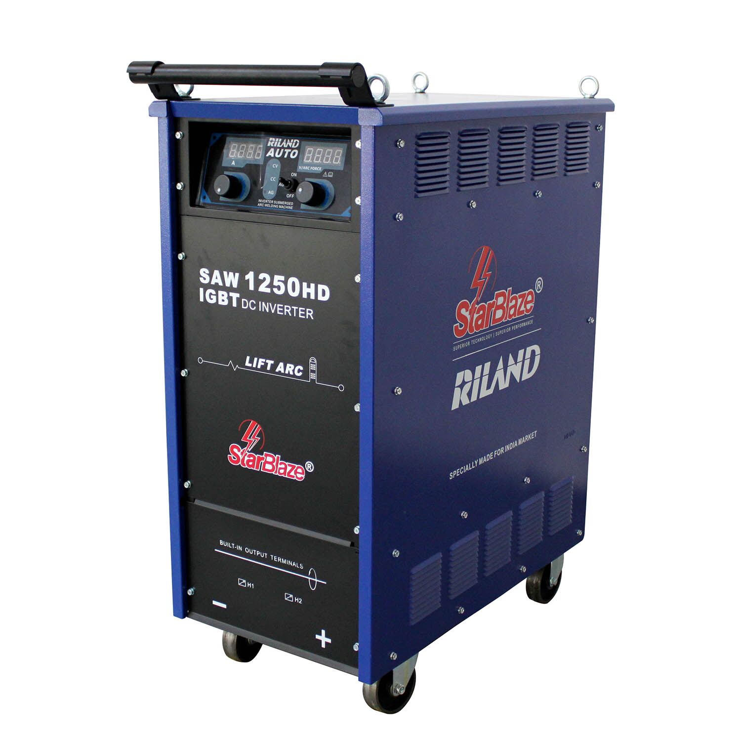 The SAW 1250HD is a fully digital, high-power Submerged Arc Welding (SAW) system built for large-scale industrial fabrication. Featuring a 100% duty cycle at 1250A and advanced IGBT inverter technology, this machine delivers reliable performance for heavy-duty applications like shipbuilding, pressure vessels, and alloy surfacing. The system includes a welding tractor with track support, intelligent dual-side current balancing, and analog controls with digital displays for current, voltage, and travel speed.