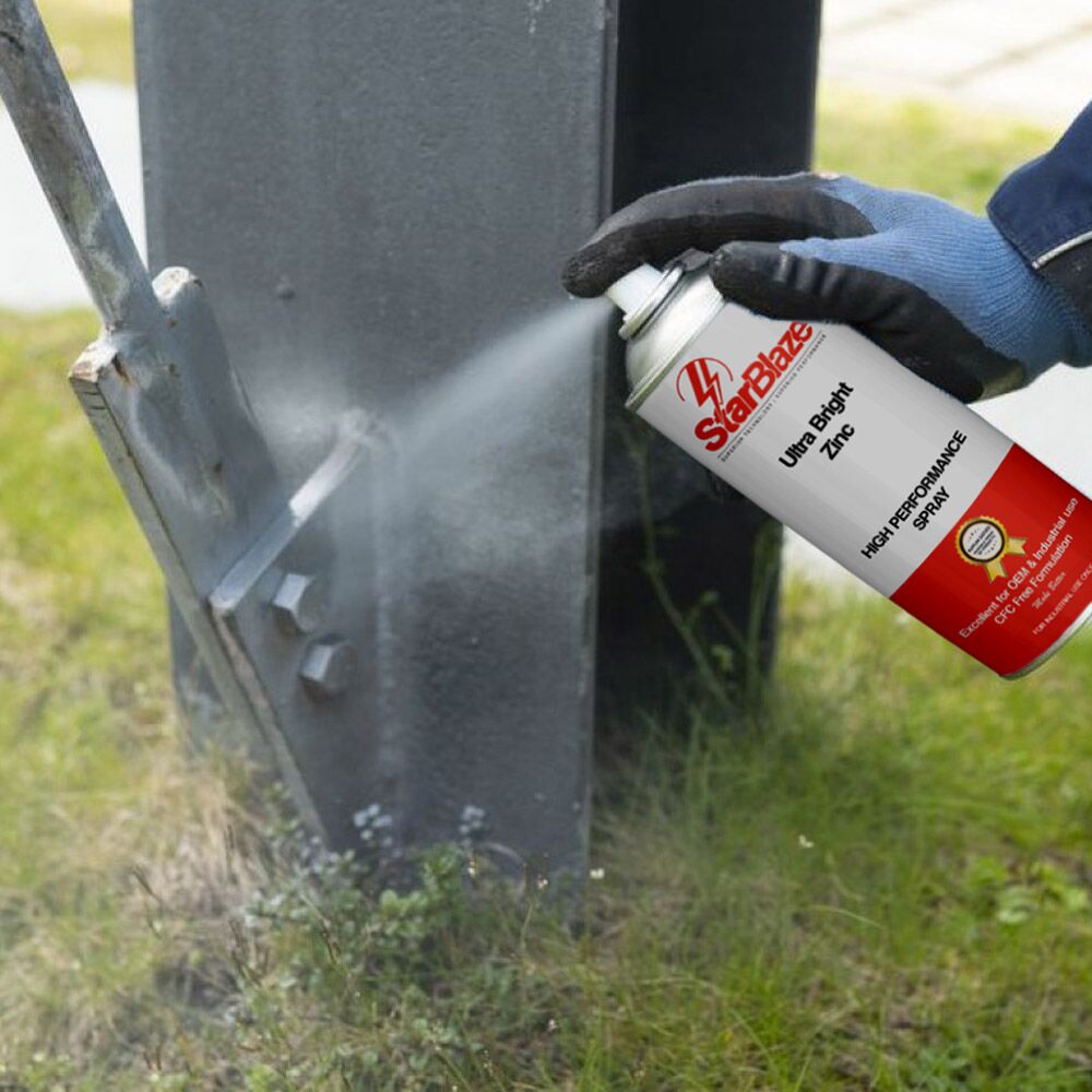 StarBlaze Ultra Bright Zinc is a quick-drying, light-duty, sacrificial coating that protects ferrous metals from oxidising. It provides a barrier as well as a higher degree of cathodic protection to the base metal against the environment and prevents the formation or spreading of rust and corrosion. Ultra Bright Zinc Spray is excellent for touch-ups to scratches, dents, welds, and machined edges on aluminium and other high-shine metal substrates.